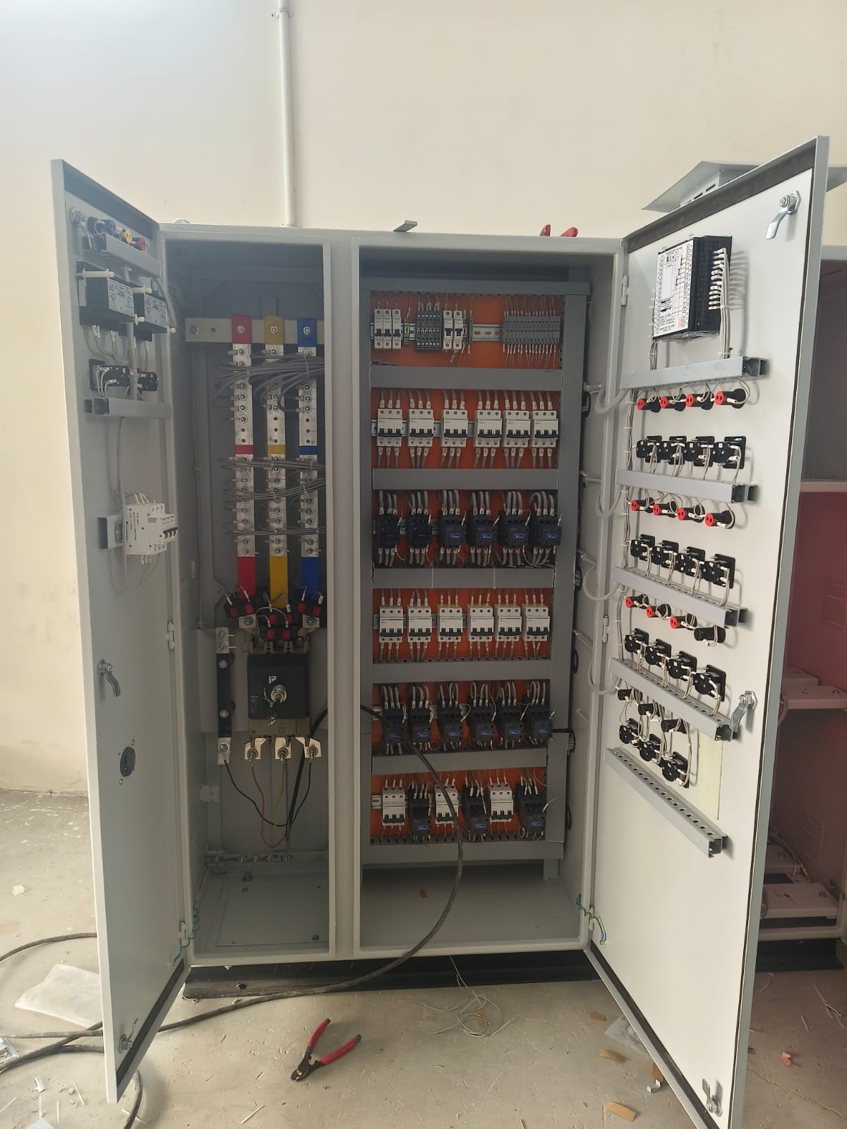 The 250kVAR Automatic Power Factor Correction (APFC) Control Panel is a high-capacity electrical panel designed to automatically monitor and improve the power factor of industrial and commercial electrical systems. By reducing reactive power, this panel enhances energy efficiency, lowers electricity bills, and prevents overloading of transformers and electrical networks. It is widely used in factories, manufacturing plants, commercial complexes, and industries with heavy inductive loads such as motors, compressors, HVAC systems, and other large equipment.