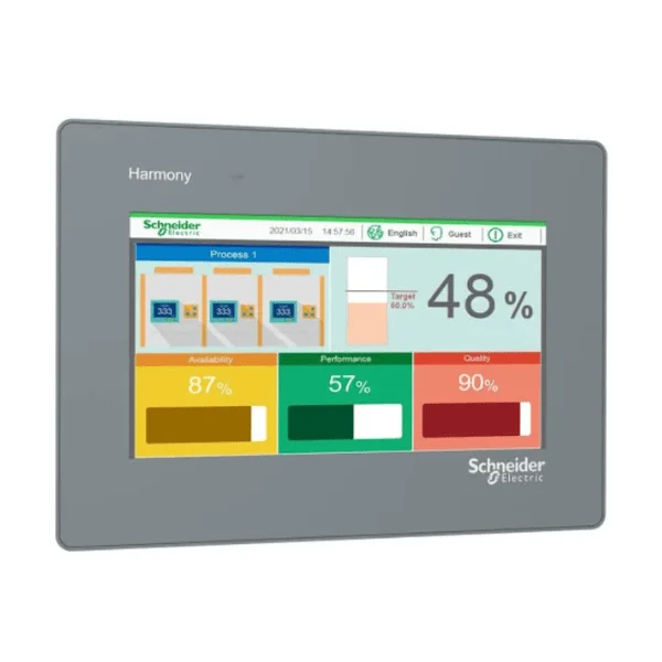 Schneider HMI (Human Machine Interface) is an advanced operator interface designed to monitor, control, and visualize industrial processes in real time. It provides a user-friendly touchscreen display that allows operators to interact with machines, view system status, adjust parameters, and respond quickly to alarms. With clear graphical representation and intuitive navigation, Schneider HMI improves operational efficiency and reduces downtime.